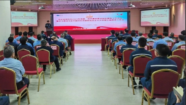 ?????4月24日,中化泉州石化召開2023年黨建、黨風(fēng)廉政建設(shè)與反腐敗工作會(huì)議暨學(xué)習(xí)貫徹習(xí)近平新時(shí)代中國特色社會(huì)主義思想主題教育工作會(huì)。公司黨委委員、領(lǐng)導(dǎo)班子成員,各基層黨組織書記、委員,各部門負(fù)責(zé)人、中層干部、黨員職工代表共150余人參加會(huì)議。中化能源主題教育第一巡回指導(dǎo)組組長通過視頻列席會(huì)議。