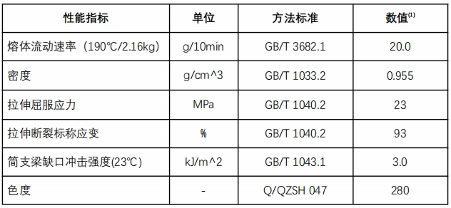 備注:(1) 典型值:以實(shí)際出廠為準(zhǔn) 推薦加工溫度:180-290 ℃ 中化泉州石化有限公司不能夠預(yù)見到此等信息和我們的產(chǎn)品或與我們的產(chǎn)品相結(jié)合的其他制造商的產(chǎn)品可能被使用的所有情形。 對因應(yīng)用此等信息而得到的結(jié)果、單獨(dú)應(yīng)用我們的產(chǎn)品、或與其它產(chǎn)品相結(jié)合應(yīng)用我們的產(chǎn)品的安全性和適宜性,中化泉州石化有限公司不承擔(dān)責(zé)任。建議使用者根據(jù)自己的目的自行測試以確定每一上述產(chǎn)品或產(chǎn)品結(jié)合的安全性和適宜性。除非另行書面約定,中化泉州石化有限公司不附保證地銷售產(chǎn)品。并且,無論是單獨(dú)使用或是與其它產(chǎn)品結(jié)合使用,購買者和使用者均應(yīng) 自行承擔(dān)因操作或使用我們的產(chǎn)品而產(chǎn)生的損失或損害的所有責(zé)任和義務(wù)。提供的屬性值僅為制造的該牌號的典型值,并不構(gòu)成規(guī)格。除非特別指明,所提到的牌號不適用于藥物/醫(yī)療范疇。 |