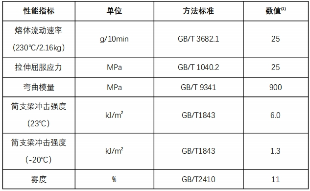 備注:(1) 典型值(非保證值) 中化泉州石化有限公司不能夠預(yù)見到此等信息和我們的產(chǎn)品或與我們的產(chǎn)品相結(jié)合的其他制造商的產(chǎn)品可能被使用的所有情形。 對因應(yīng)用此等信息而得到的結(jié)果、單獨應(yīng)用我們的產(chǎn)品、或與其它產(chǎn)品相結(jié)合應(yīng)用我們的產(chǎn)品的安全性和適宜性,中化泉州石化有限公司不承擔(dān)責(zé)任。建議使用者根據(jù)自己的目的自行測試以確定每一上述產(chǎn)品或產(chǎn)品結(jié)合的安全性和適宜性。除非另行書面約定,中化泉州石化有限公司不附保證地銷售產(chǎn)品。并且,無論是單獨使用或是與其它產(chǎn)品結(jié)合使用,購買者和使用者均應(yīng) 自行承擔(dān)因操作或使用我們的產(chǎn)品而產(chǎn)生的損失或損害的所有責(zé)任和義務(wù)。提供的屬性值僅為制造的該牌號的典型值,并不構(gòu)成規(guī)格。除非特別指明,所提到的牌號不適用于藥物/醫(yī)療范疇。 |